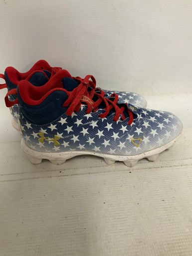 Used Under Armour LOCKED DOWN Adult FB Cleats White/Red/Navy Senior 5.5 11823-S000037558