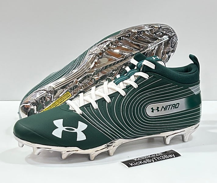Size 13 Under Armour Nitro Mid MC Football Cleats Green Chrome 3021066-301 4D UA