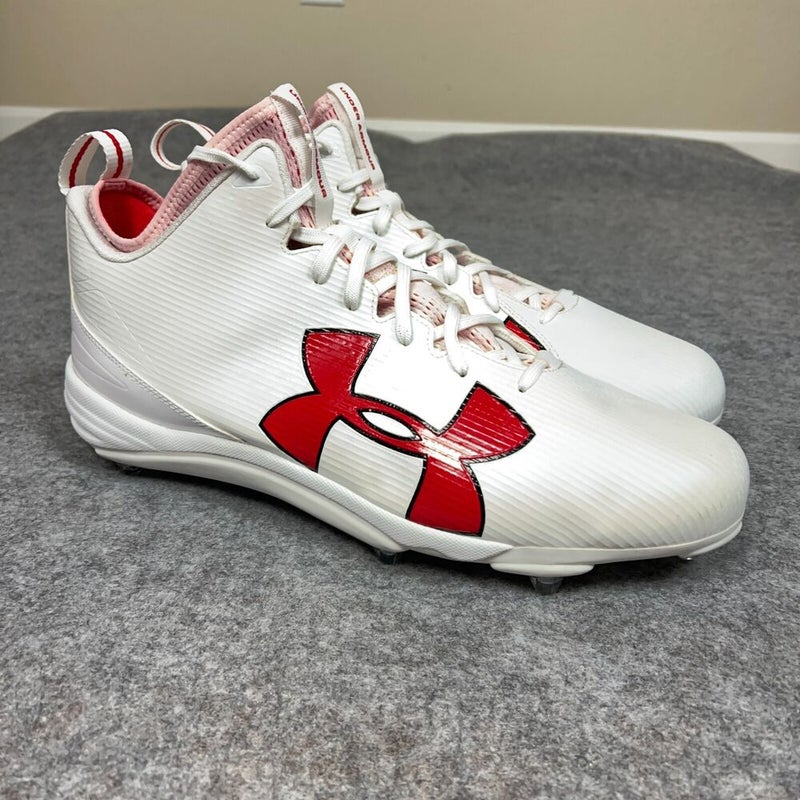 Under Armour Mens Football Cleat 16 Wide White Red Shoe Lacrosse Low Detach A2