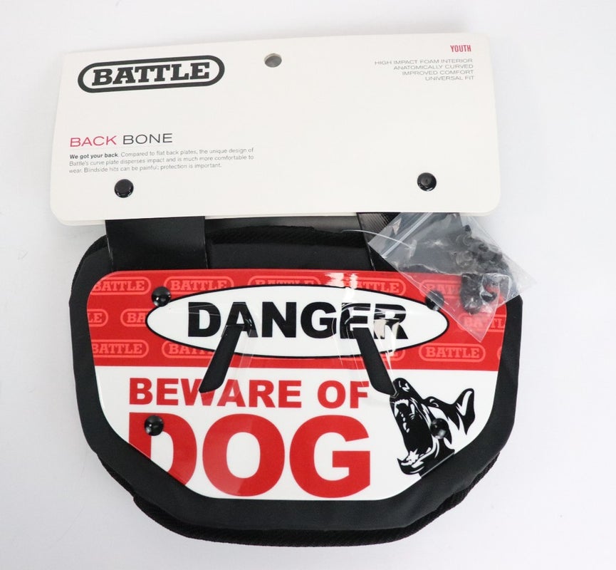 Battle Sports Beware of Dog Chrome Youth Football Back Plate NEW