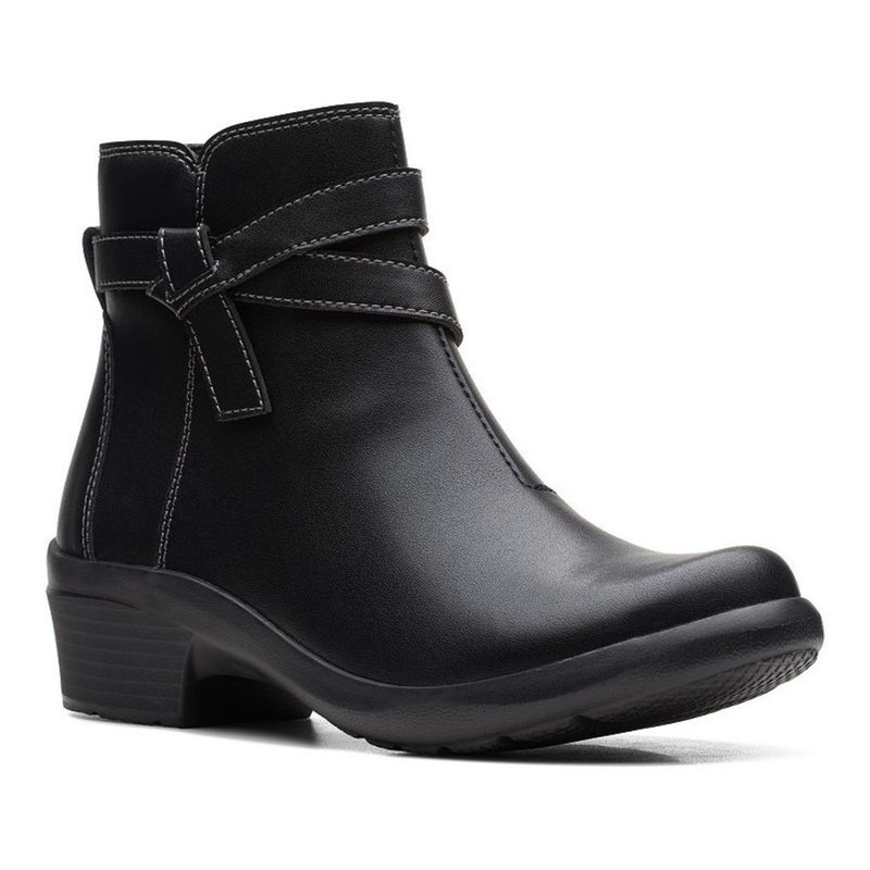 Clarks Angie Spice Boots Women's US 9 Black Leather Round Toe Bootie TZP465
