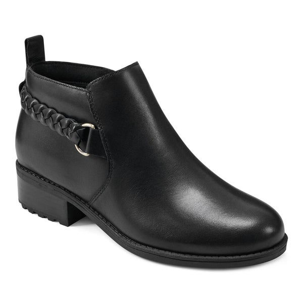 Easy Spirit Roslyn Boot Womens 7 Black Leather Braided Strap Ankle Bootie DDK596