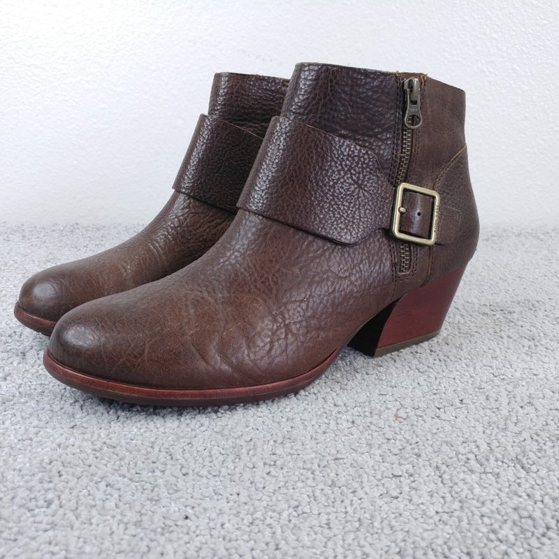 Kork Ease Ankle Boots Womens Size 10 Brown Pebbled Leather Zip Buckle Heel Shoes