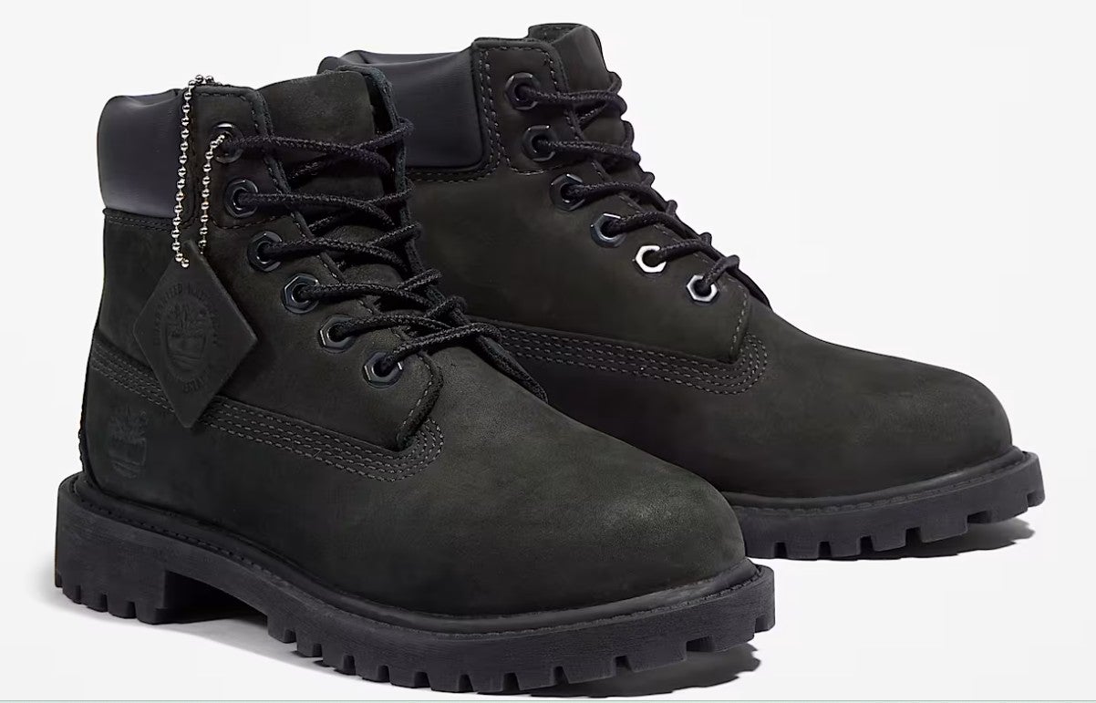 Black Unisex Youth Timberland 6 Inch Premium Waterproof Boots (New) - Black Nubuck