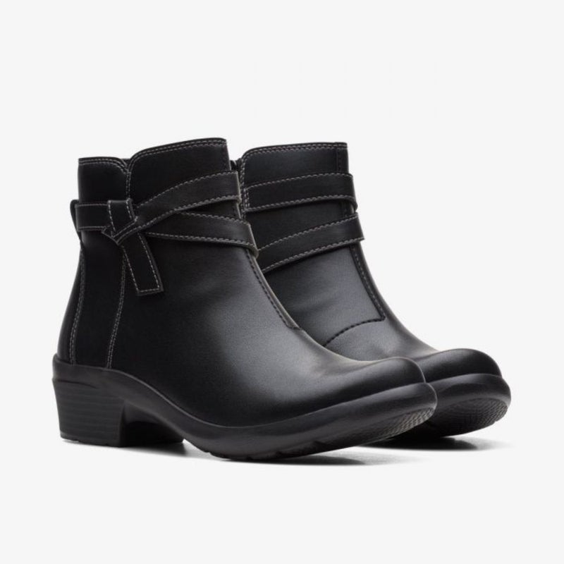 Clarks Angie Spice Boots Women's US 7.5 Black Leather Round Toe Bootie ZAP754