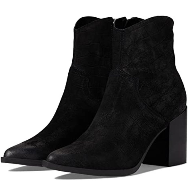 Steve Madden Cate Boots Women's US 10 Croc Black Block Heel Ankle Bootie ZAP755