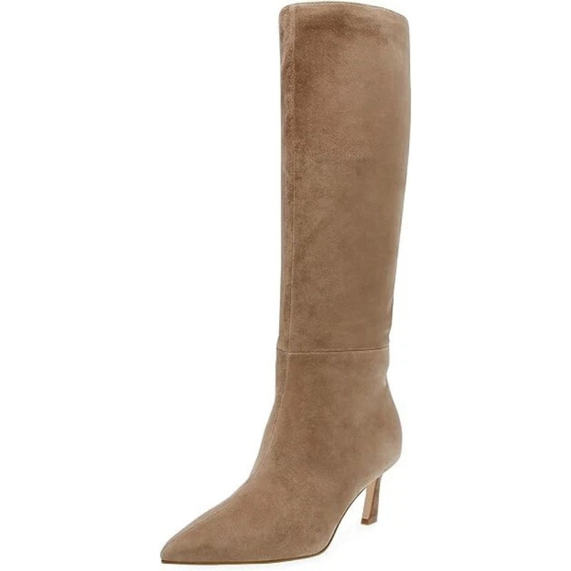 Steve Madden Lavan Boots Women 9.5 Oatmeal Suede Pointed Toe Kitten Heel lion950