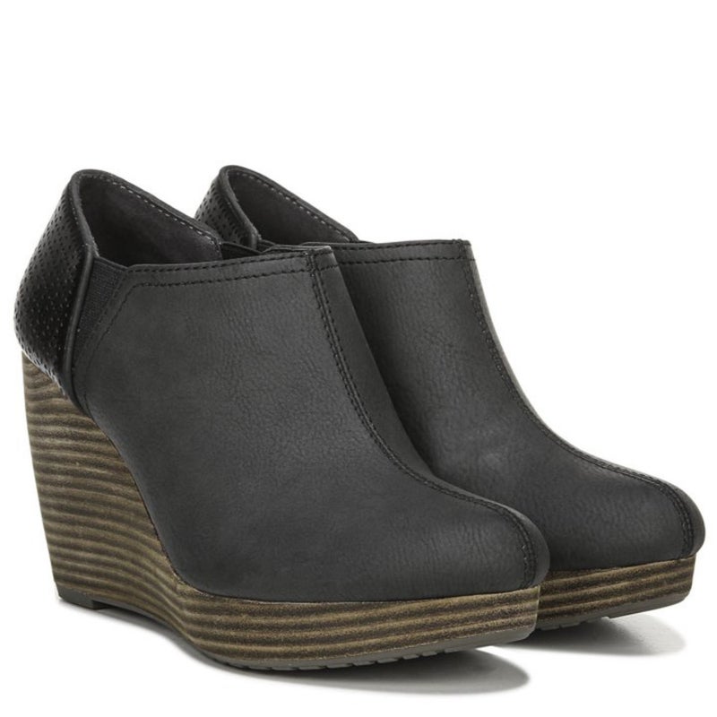 Dr. Scholl's Harlow Boots Women 6.5 Black Faux Leather Wedge Heel Bootie HAWK115