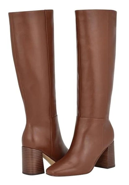 Calvin Klein Arista Boots Womens US 6 Brown Leather Block Heel Knee High LION704