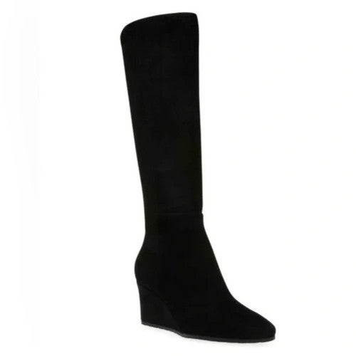 Anne Klein Valonia Bootie Women 8 Black Suede Wedge Heel Knee High Boots LION817