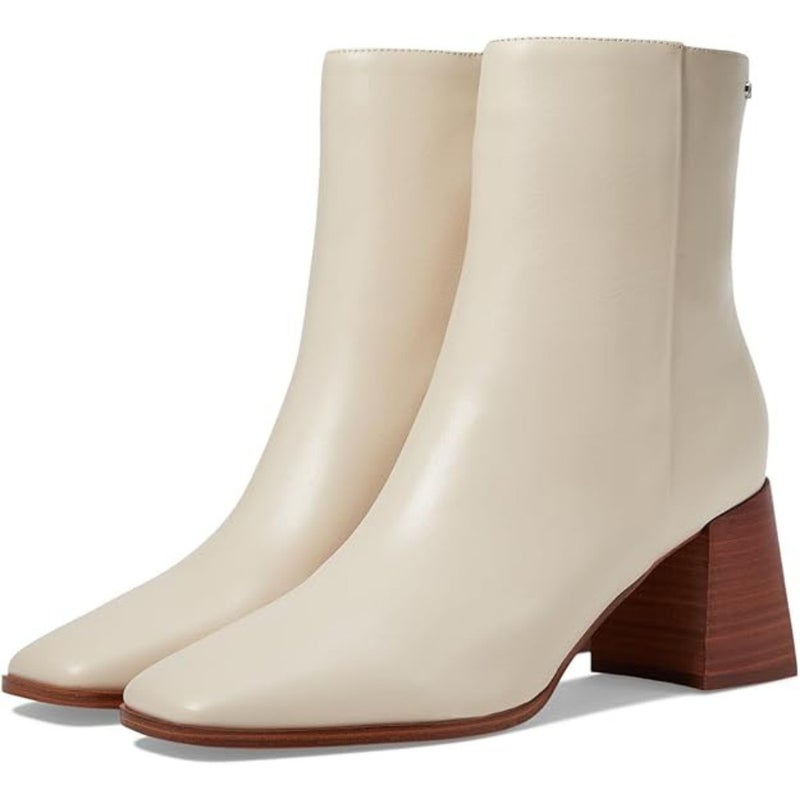 Calvin Klein Broma Boots Women's US 8 White Leather Block Heel Bootie LION470
