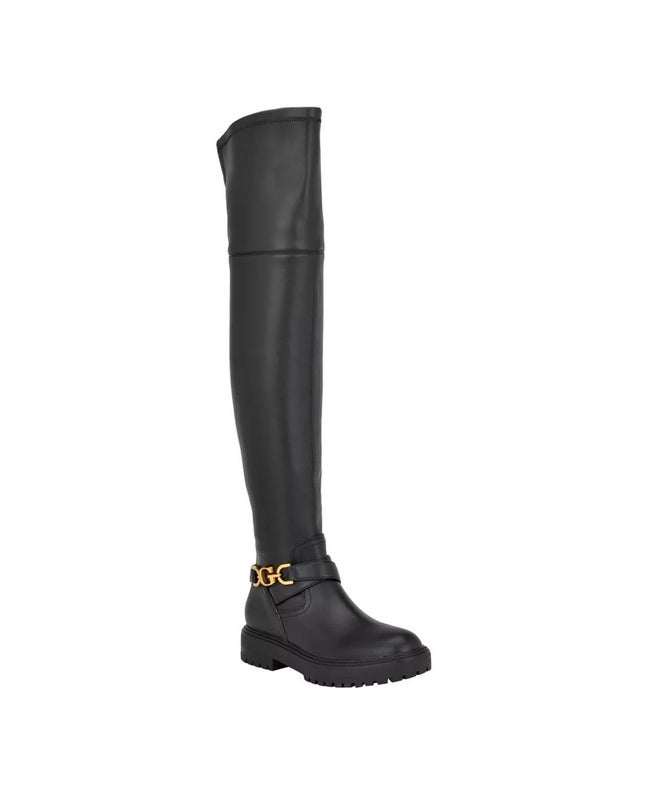 Guess Jellio Boots Women's Black Faux Leather Over The Knee Lug Sole LION295