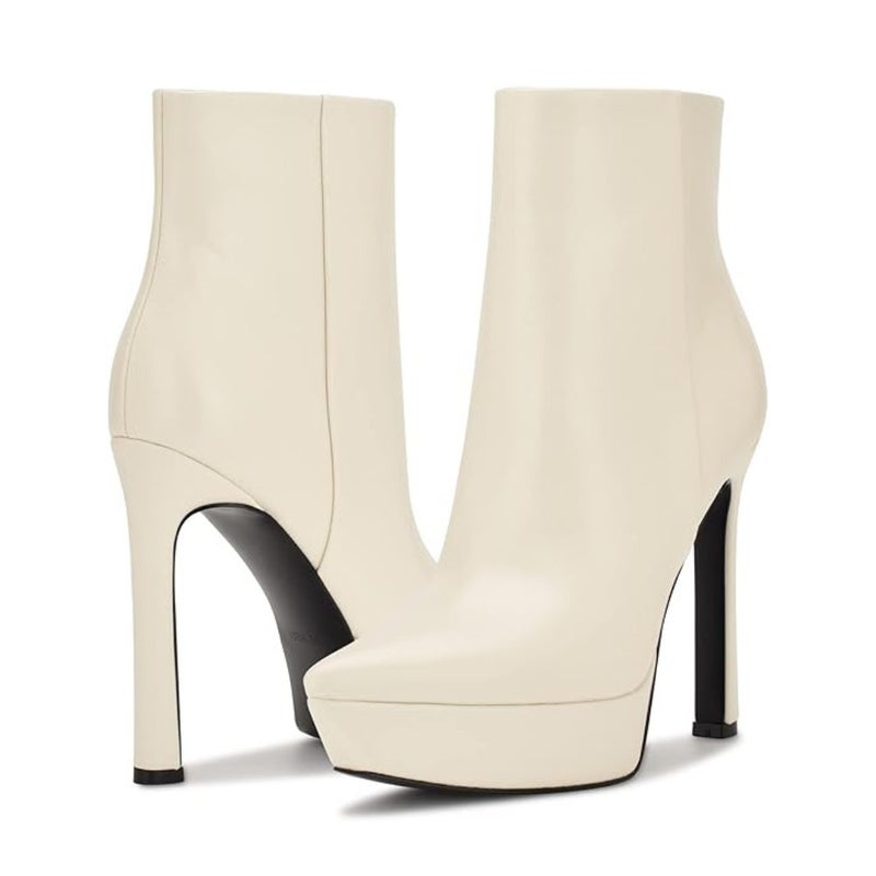 Nine West Loraa Boots Women's US 7.5 Cream Stiletto Heel Platform Bootie LION82