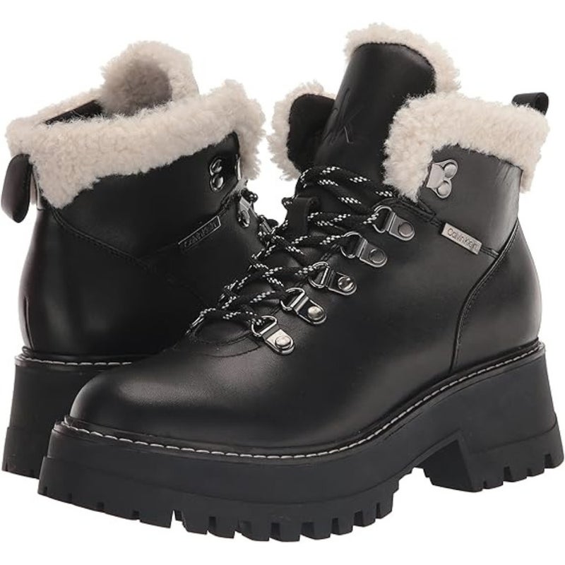 Calvin Klein Kristel Boots Women's US 8.5 Black Lug Sole Hiker Bootie LION297