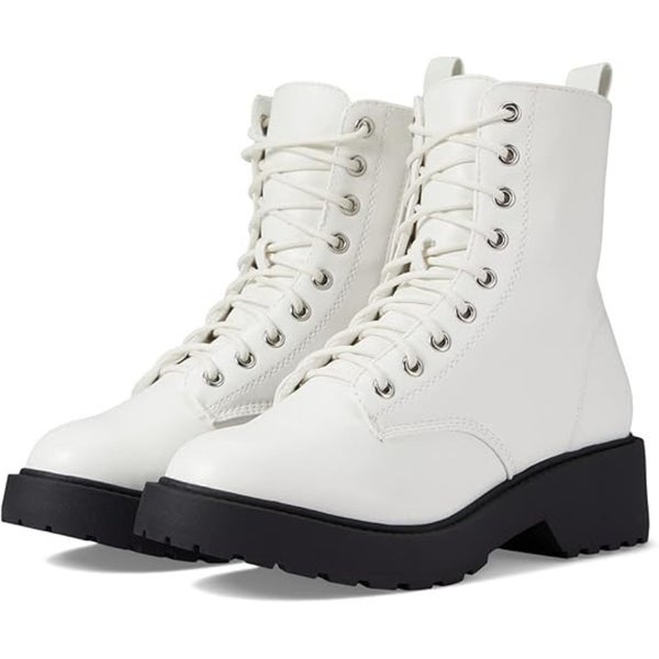 MIA Lykee Boots Women's US 10 White Round Toe Lace Up Block Heel Combat JOBB508