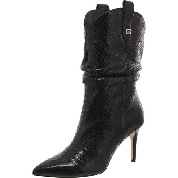Guess Benisa Boot Women 11 Black Croco Leather Pointed Toe Stiletto Heel GAL1398