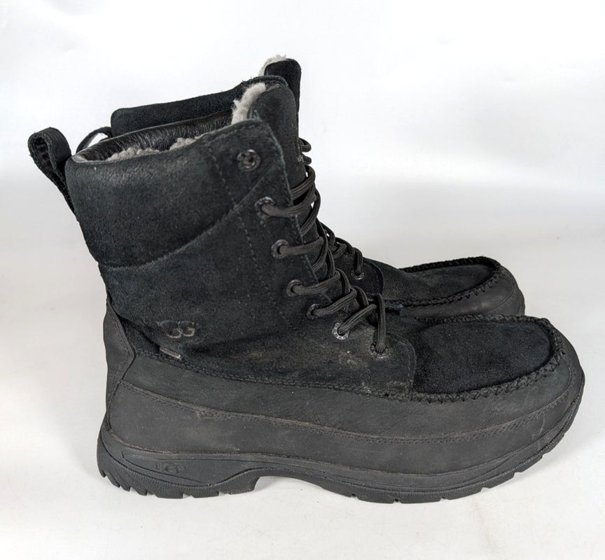 UGG Butte Black Leather Waterproof Sheepskin Lined Boots Men's Size 11 1011565