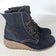 Fly London Nero Navy Blue Suede Leather Wedge Bootie Women's Size 39 / 8.5-9