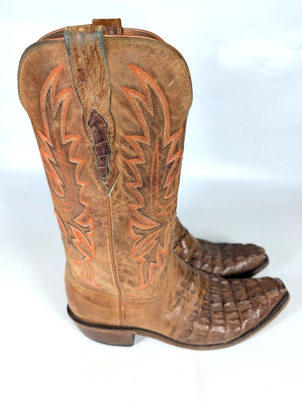 LUCCHESE 1883 Caiman Leather Cowboy Western Boots Hornback Ropers Men's 7.5 D