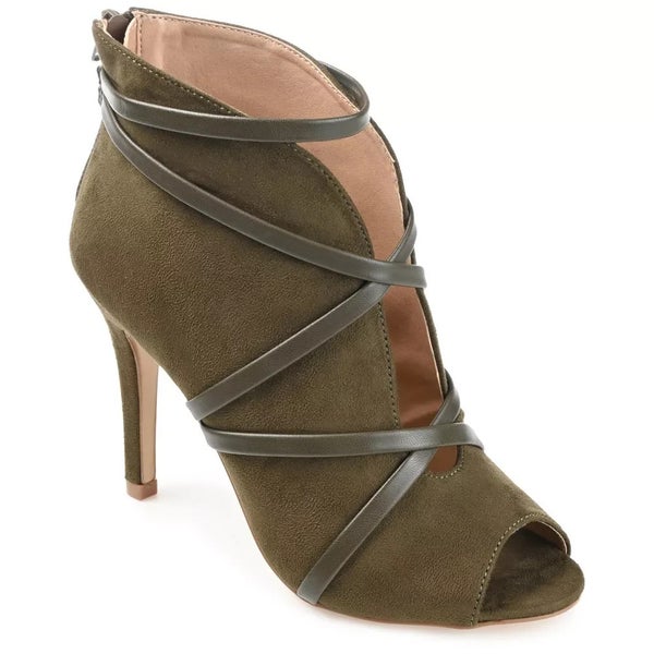 Journee Collection Samara Boots Women's 8.5 Olive Suede Peep Toe Bootie ZAP1265