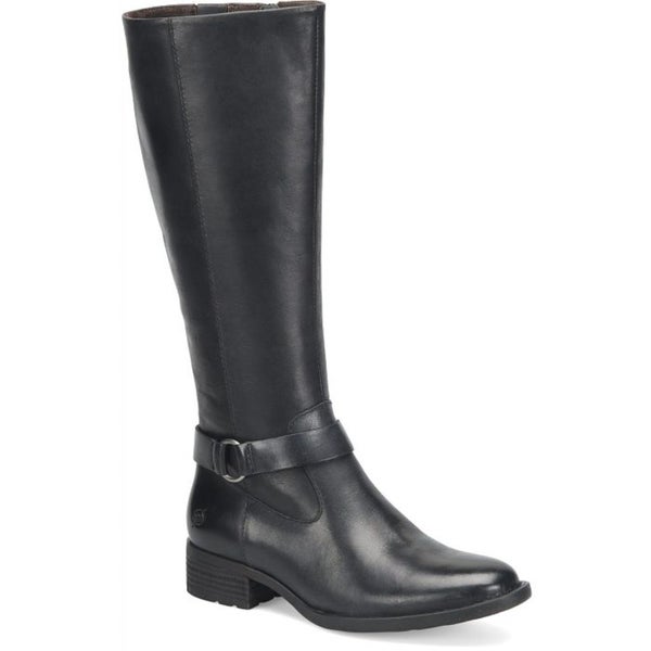 Born Saddler Women US 7 Black Leather Block Heel Knee-High Riding Boots VER1064