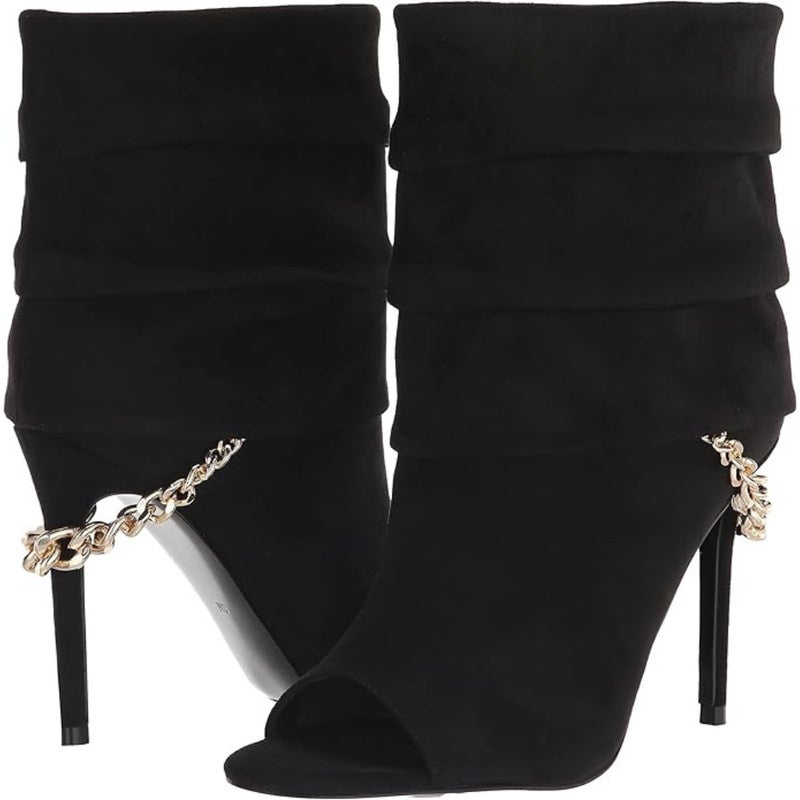 Guess Adilee Boots Women's 6 Black Suede Peep Toe Stiletto Heel Bootie HTAT339