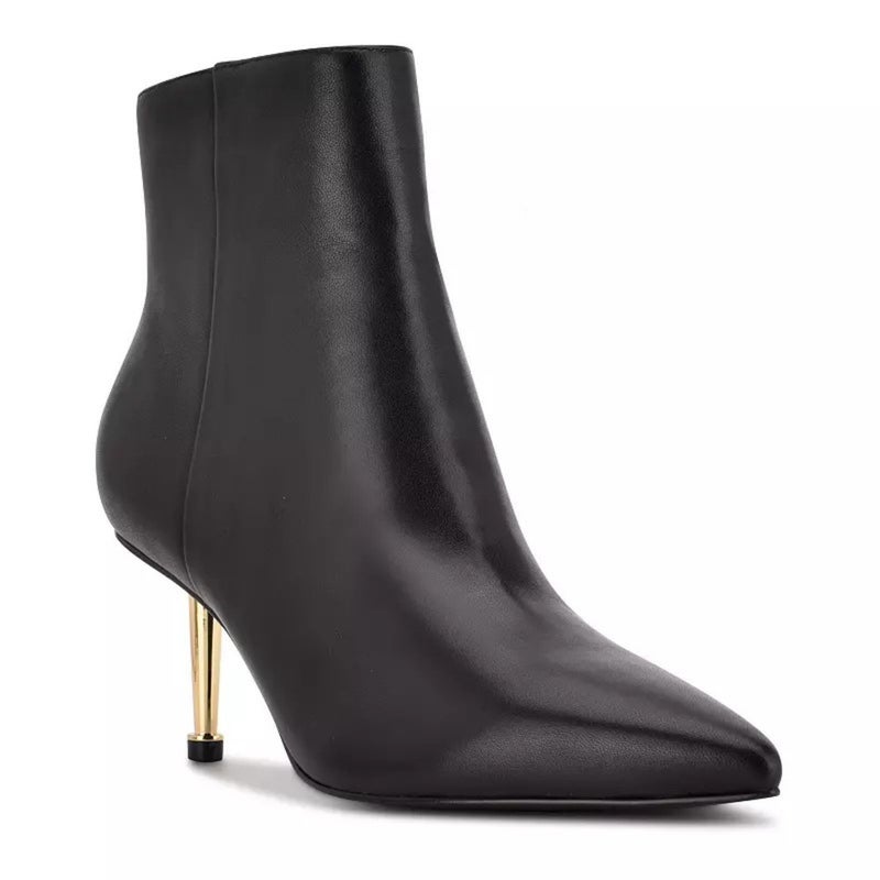 Nine West Ritaa Bootie Women 9.5 Black Leather Pointed Toe Stiletto Heel HTAT536