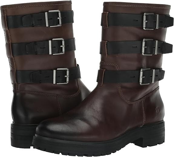 Lucky Brand Cheviss Women US 7.5 Dark Dune Leather Round Toe Biker Boots JOBB367