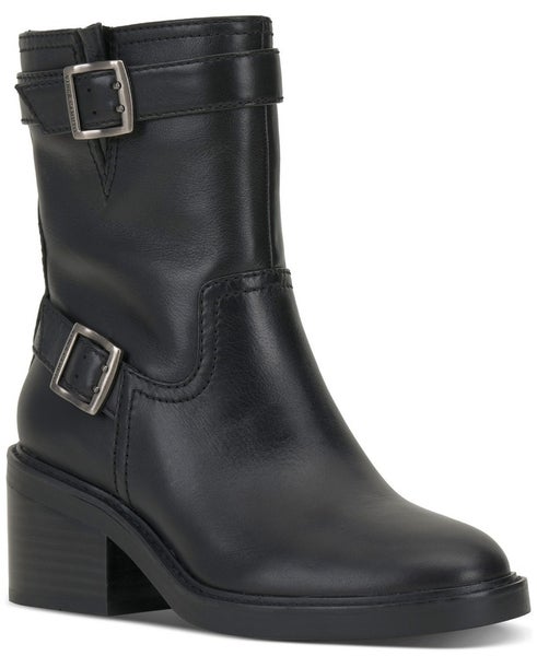 Vince Camuto Vergila Boots Women 9 Black Leather Block Heel Biker Bootie LION568