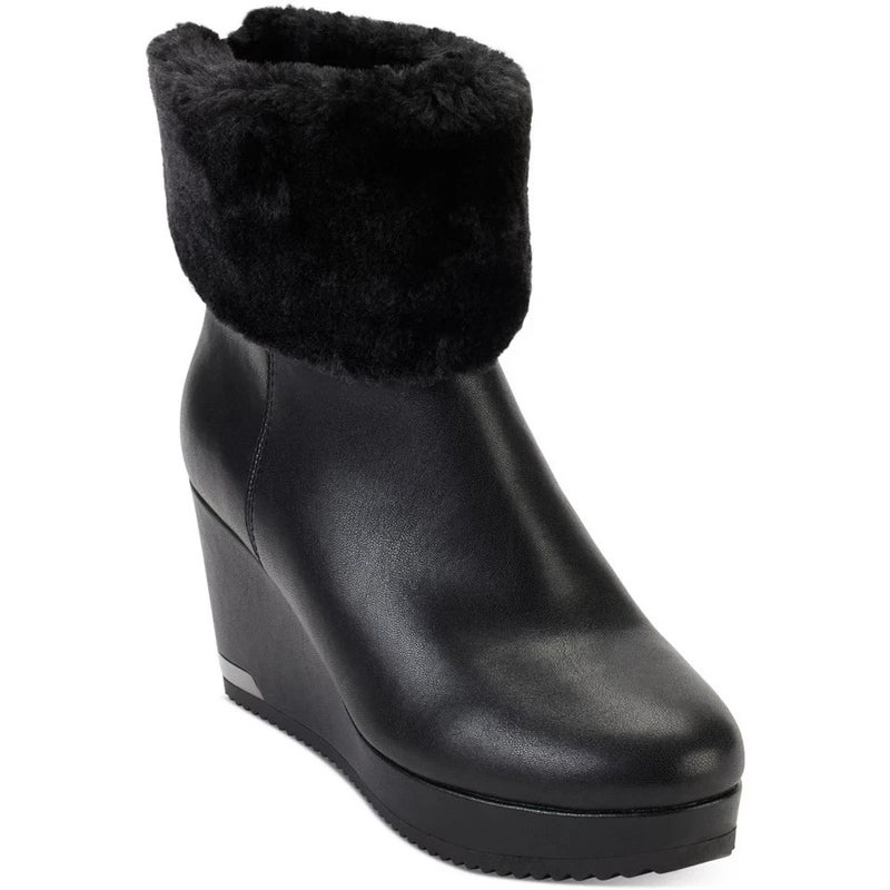 Dkny Nadra K3201890 Boots Women's US 6 Black Leather Wedge Heel Bootie LION679