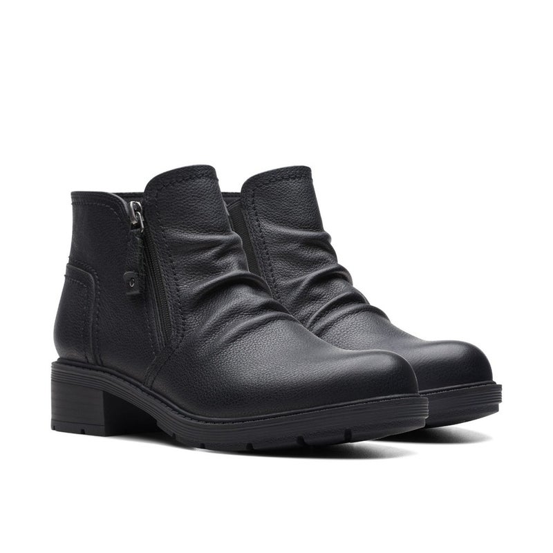 Clarks Hearth Dove Bootie Women's US 9.5 Black Leather Ankle Moto Boots LION710