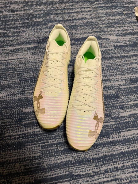 White and Gold Men's Size M 12.0 (W 13.0) Adult Under Armour Blur Pro Cleats (New)