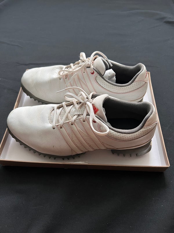 Adidas Tour360 Golf leather Shoes White Red Stripes spikes ART099025 Men's 9.5