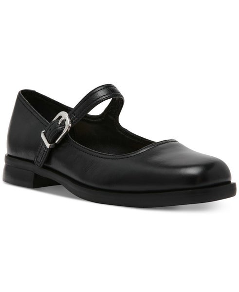 Steve Madden Delancy Women's US 9 Black Leather Square Toe Flat Shoes ZAP1908