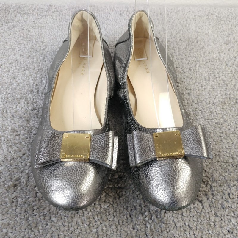 Cole Haan Tali Bow Ballet Flats Womens Size 6.5 Slip On Shoes Metallic Leather