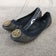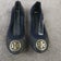 Tory Burch Allie Ballet Flats Womens 6 Shoes Navy Blue Leather Slip On Gold Logo
