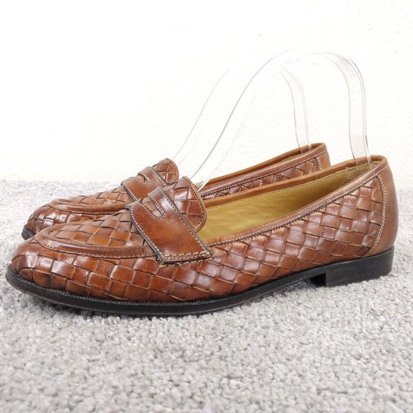 Cole Haan Collection Womens 6.5 AA Narrow Shoes Brown Penny Loafers Woven Italy
