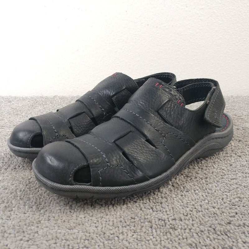 Clarks Hapsford Cove Sandals Mens Size 8 Shoes Black Leather Fisherman