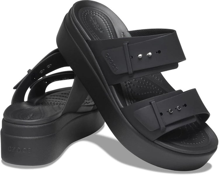 Crocs Brooklyn Buckle 207431-001 Sandals Women's US 6 Black Wedge Heel HAWK210