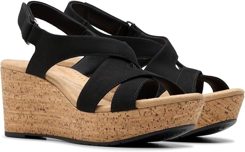 Clarks Rose Womens US 10 Black Leather Slingback Strap Wedge Sandals GAL293