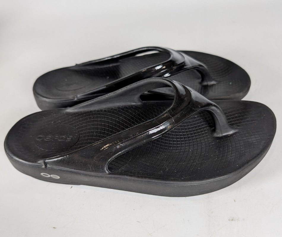 OOFOS OOLALA Luxe Flip Flop Womens Size 7 Thong Recovery Sandals Metallic Black