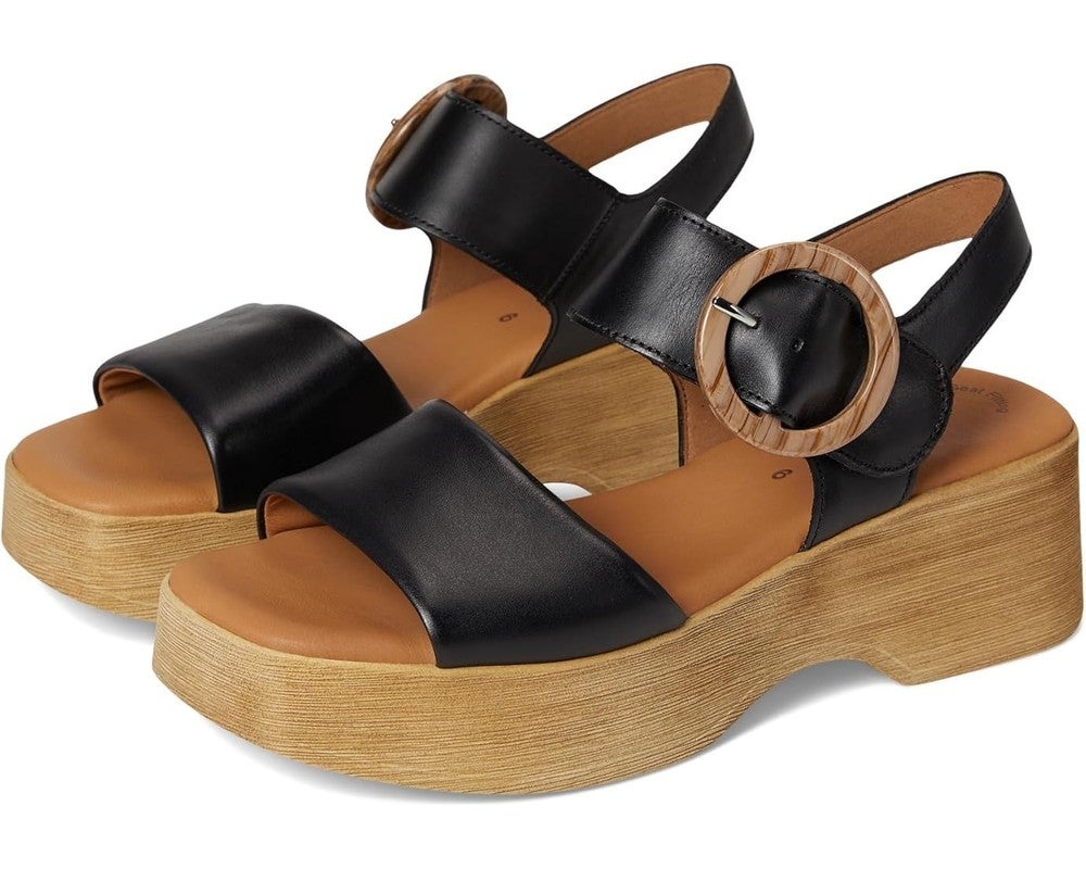 Gabor 64.520 Sandals Womens US 9.5 Black Leather Ankle Strap Wedge Heel ZOGG2662
