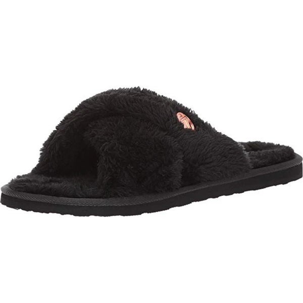 Volcom Lil Slip W0841800-BLK Sandal Women's 5 Black Faux-Fur Cross Strap RHS6532