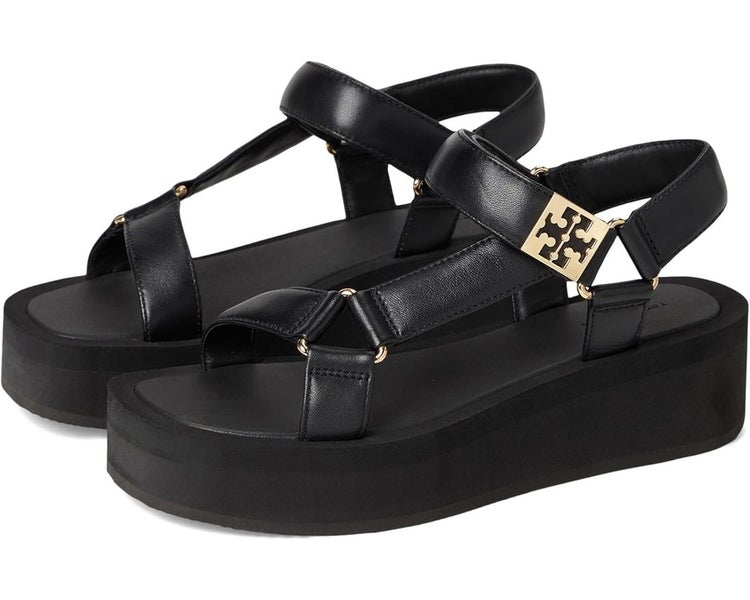 Tory Burch Mellow Sandals Womens US 5 Black Leather Ankle Strap Platform HAWK687