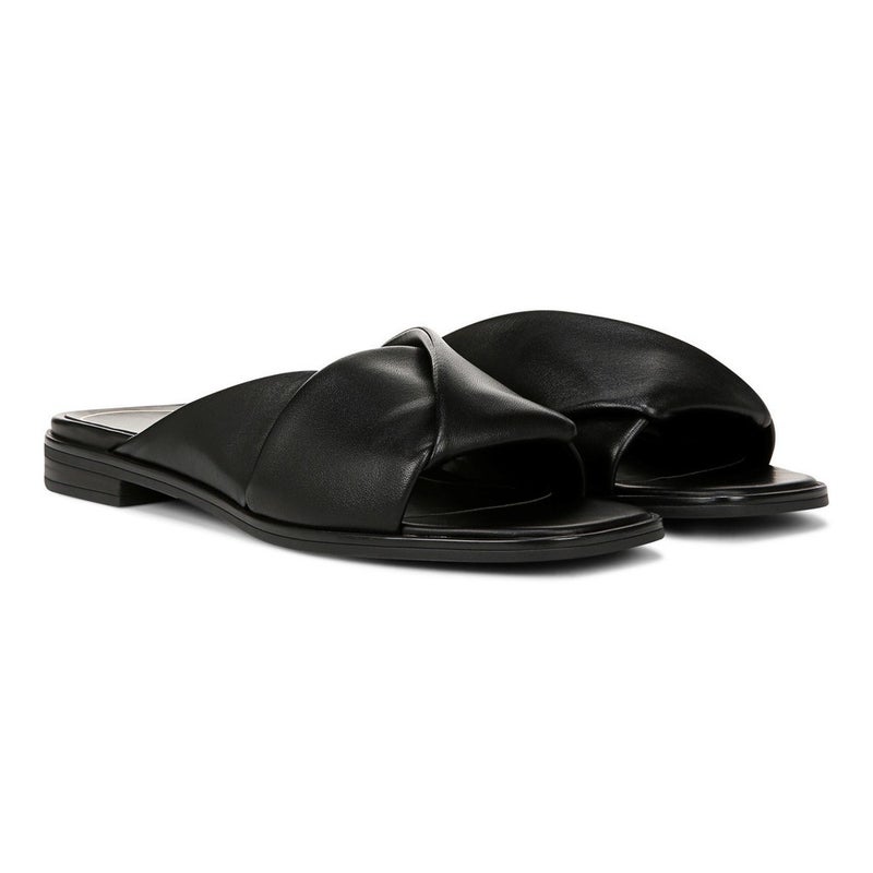 Vionic Miramar Sandals Women's US 9 Black Leather Square Toe Slides HAWK1176