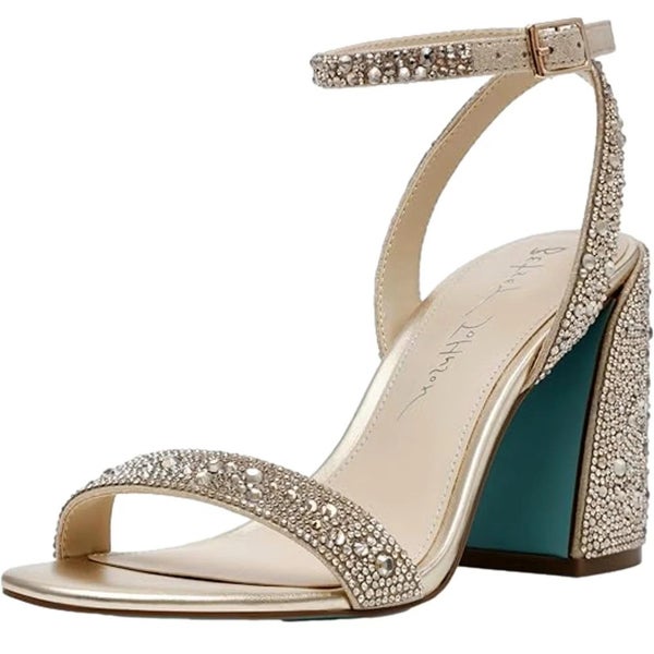 Betsey Johnson Shaye Sandals Women's 8 Light Gold Rhinestone Block Heel HAWK475