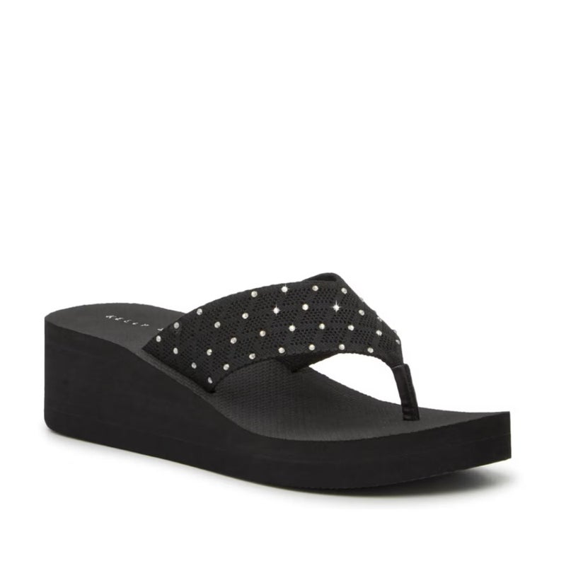Kelly & Katie Talor Sandals Women 8 Black Rhinestone Toe Post Wedge Heel GAL1053