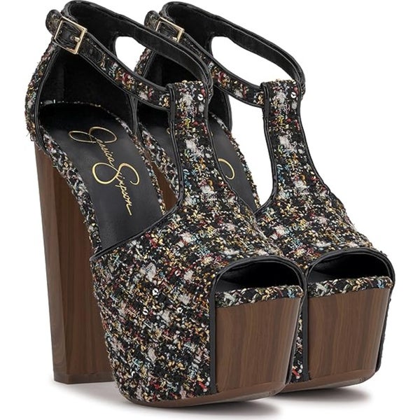 Jessica Simpson Dany Sandals Women US 8 Black Tweed Ankle Strap Platform GAL1136