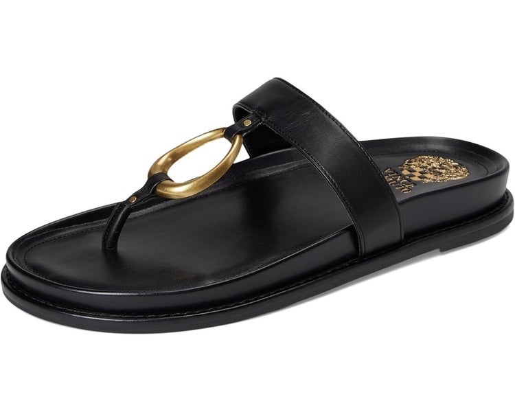 Vince Camuto Genri O-Ring Thongs Women's 11 Black Leather Slip On Sandal GAL1422