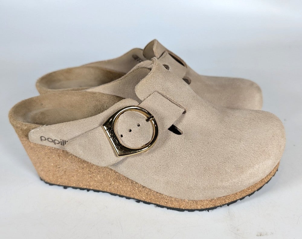 Birkenstock Papillio Fanny Ring Buckle Suede Wedge Sandals Size 37 / 6 Tan Suede
